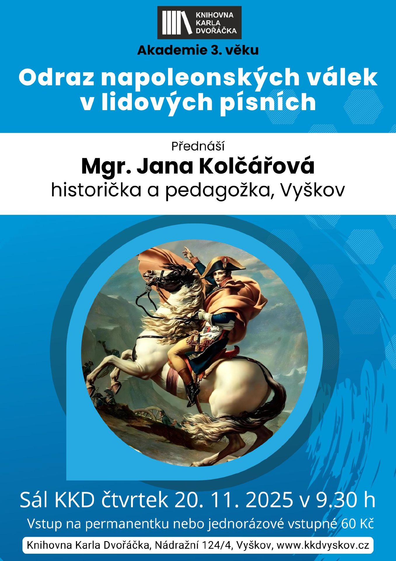 Bitva u Slavkova, bitva u Znojma a události, které jim předcházely a které následovaly, zanechaly v našem regionu nesmazatelnou stopu. Připomínají je nejen pomníky a památníky, ale odrážejí se rovněž v literárních dílech našich i světových autorů beletrie a literatury faktu. Stopy najdeme i v příjmeních obyvatel či v lidových krojích. Velmi výrazně se však odráží v lidových písních, v nichž se zpívá o odvodu, o verbování, o bitvě… Z tohoto pohledu jsou lidové písně vojenské zajímavým zdrojem informací. Vstup na permanentku, nebo jednorázové vstupné 60 Kč.